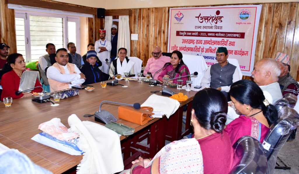उत्तराखंड राज्य स्थापना की 25वीं वर्षगांठ के अवसर पर तहसील परिसर बागेश्वर में राज्य आंदोलनकारियों एवं उनके परिजनों को माल्यार्पण व शॉल ओढ़ाकर सम्मानित किया गया। कार्यक्रम में शहीदों के चित्रों की प्रदर्शनी भी लगाई गई। इस दौरान आंदोलनकारियों ने अपने अनुभव साझा किए और राज्य के विकास हेतु सुझाव दिए।